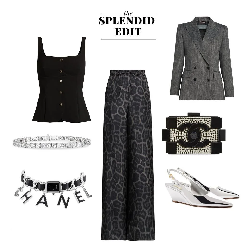 Monochromatic pieces punctuated with textural pops of silver make this the perfect early fall look.